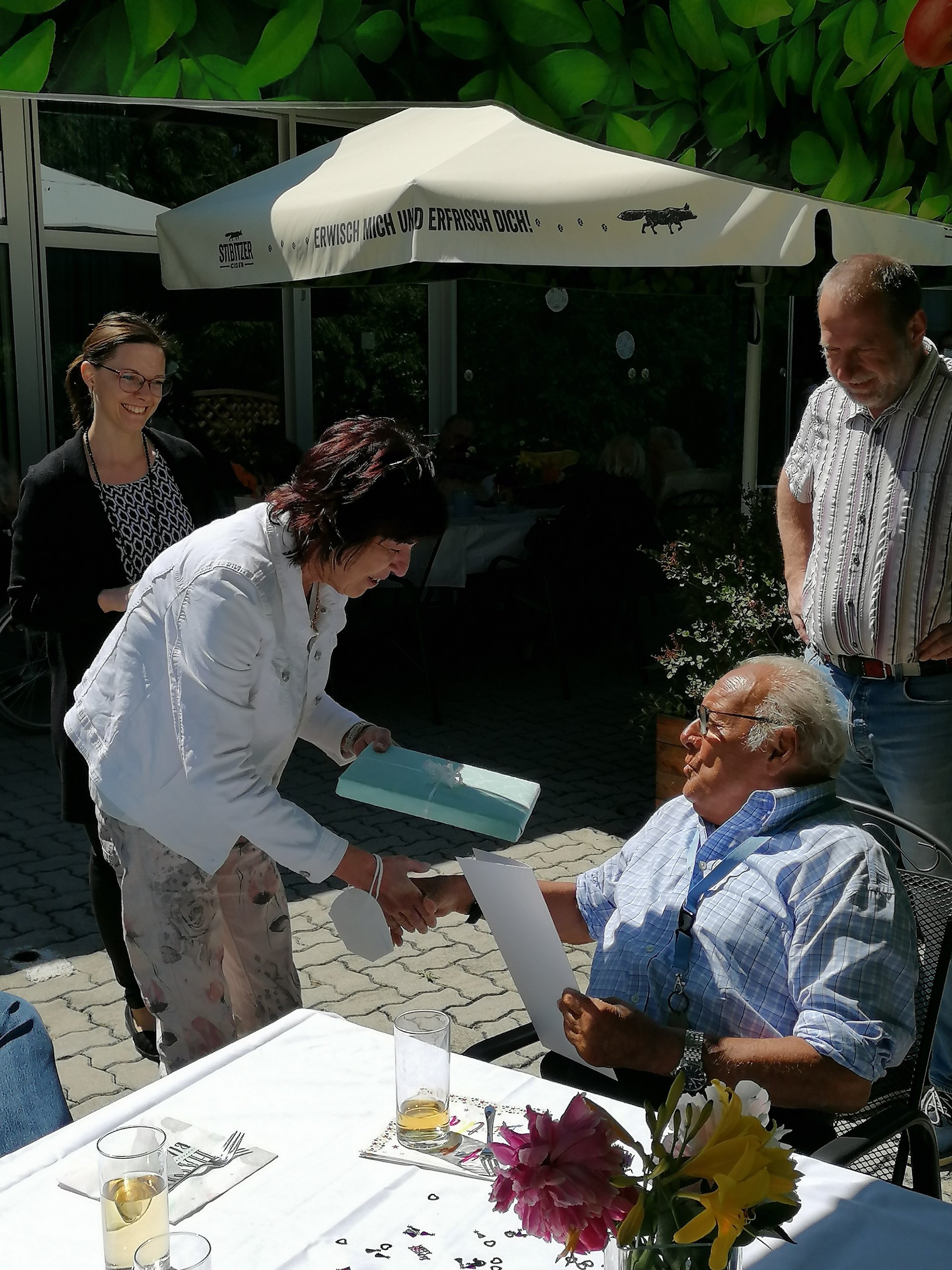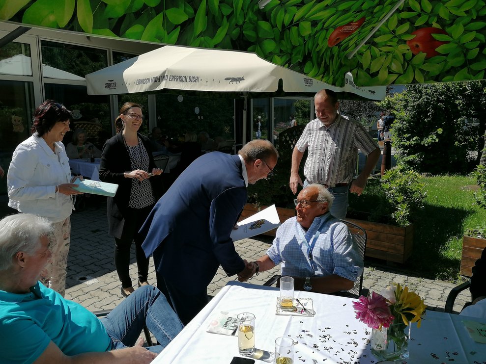 Am 31.5.22 fand auf der Terrasse, bei herrlichem Wetter, die Geburstagsehrung der Gemeinde statt.