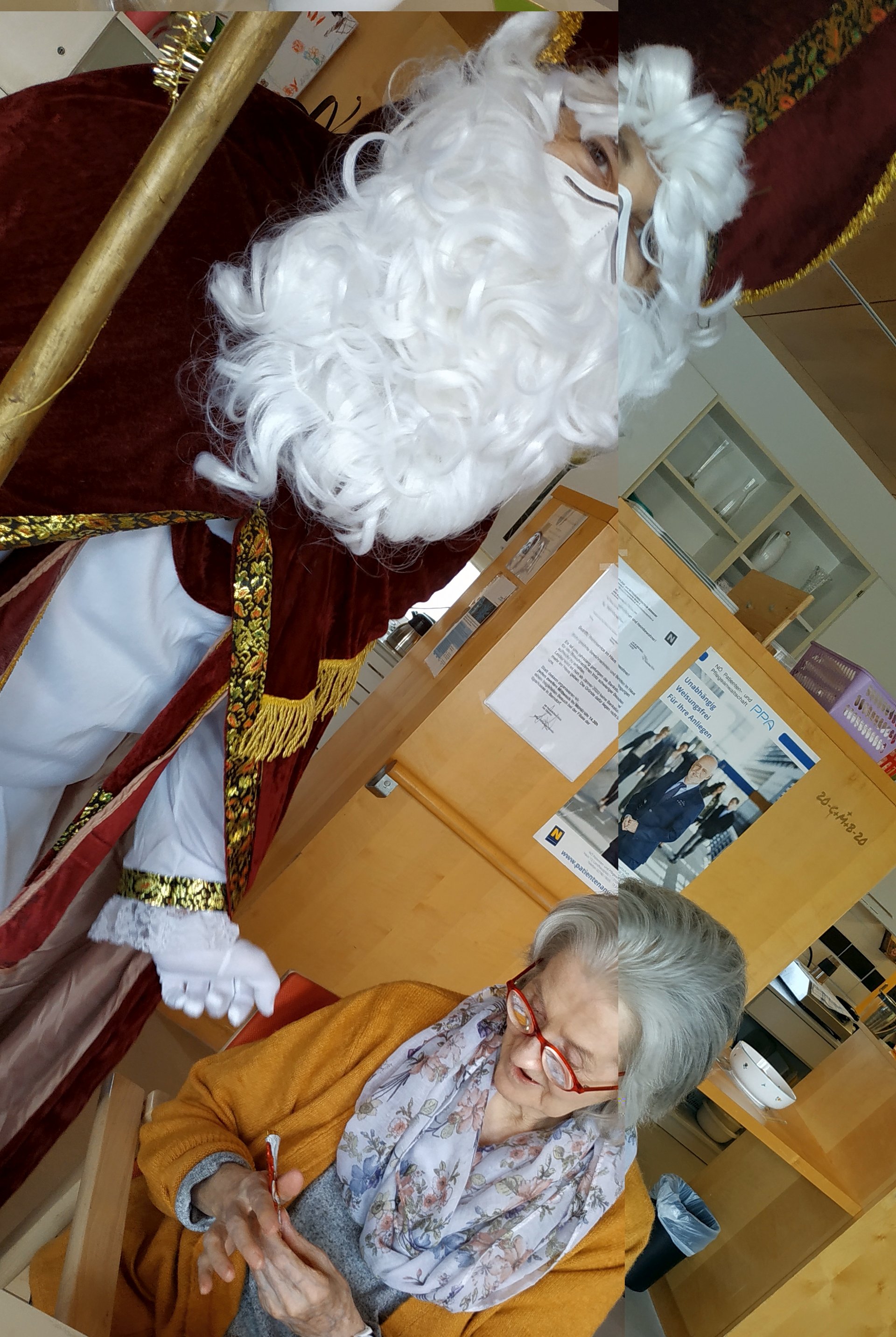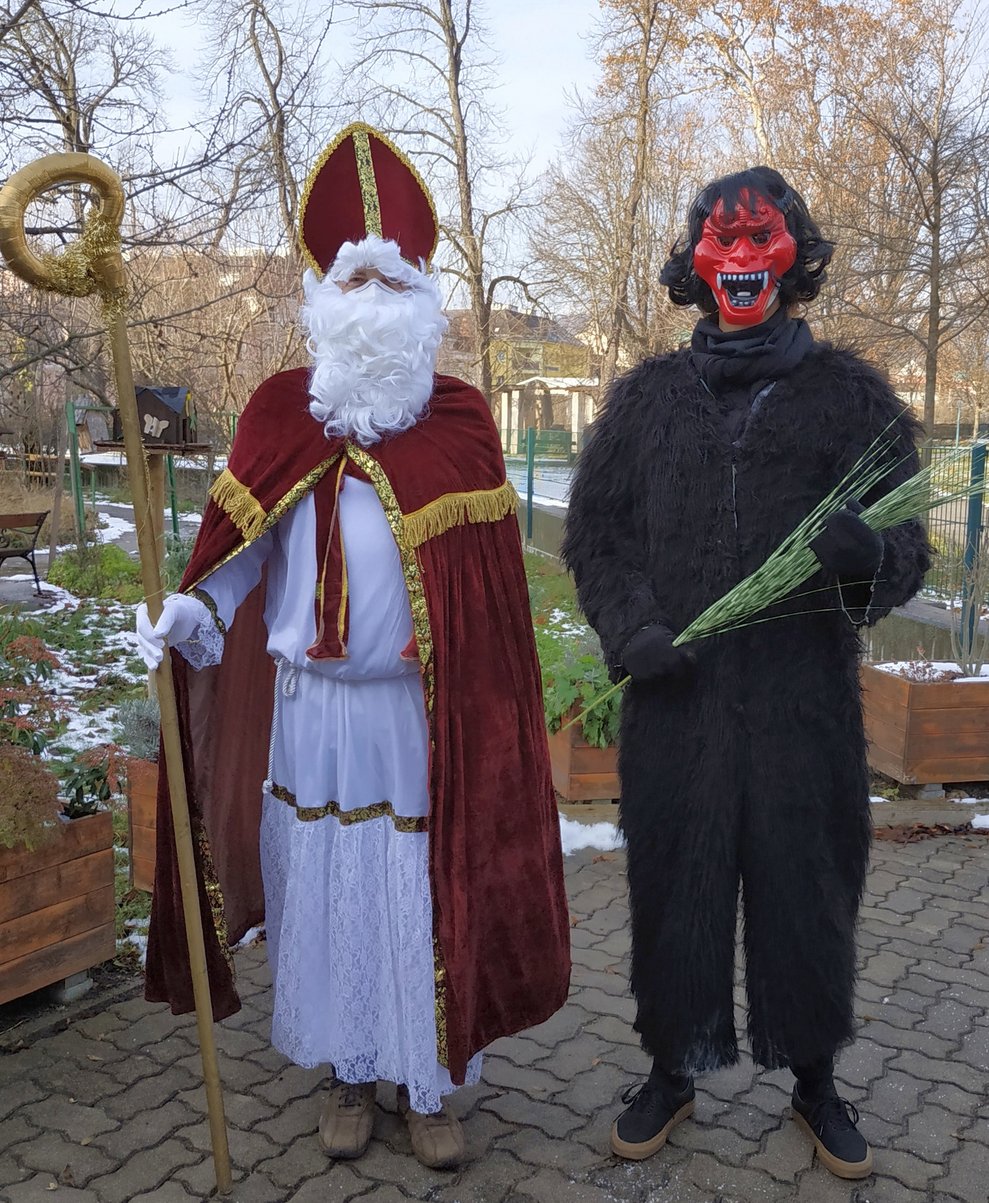 Am 6. Dezember sorgten ein würdevoller Nikolo und ein zahmer Krmpus für Freude und Überraschung im Haus. Die fesch kostümierten Mitarbeiter verwöhnten unsere Bewohnerinnen und Bewohner und Mitarbeiterinnen und Mitarbeiter mit feinen Schokonikoläusen.